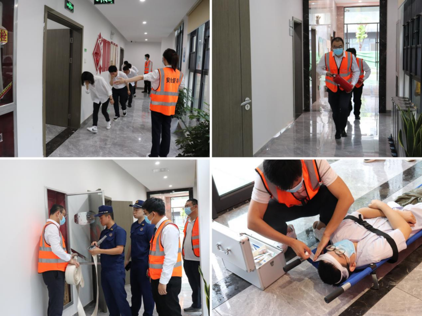 上午10點,警報響起,演練正式開始。各工作小組按照預案要求分工,各司其職,演練設置了應急聯(lián)動、消防滅火、人員疏散等科目。演練過程中,全體參演人員動作規(guī)范,緊張有序地進行消防安全巡查、人員疏散引導等各項救援工作,在疏散安全員的引導下,全體人員按照安排有序疏散,嚴謹有序的完成規(guī)定動作和演練,迅速、緊張有序撤離至一樓大廳。