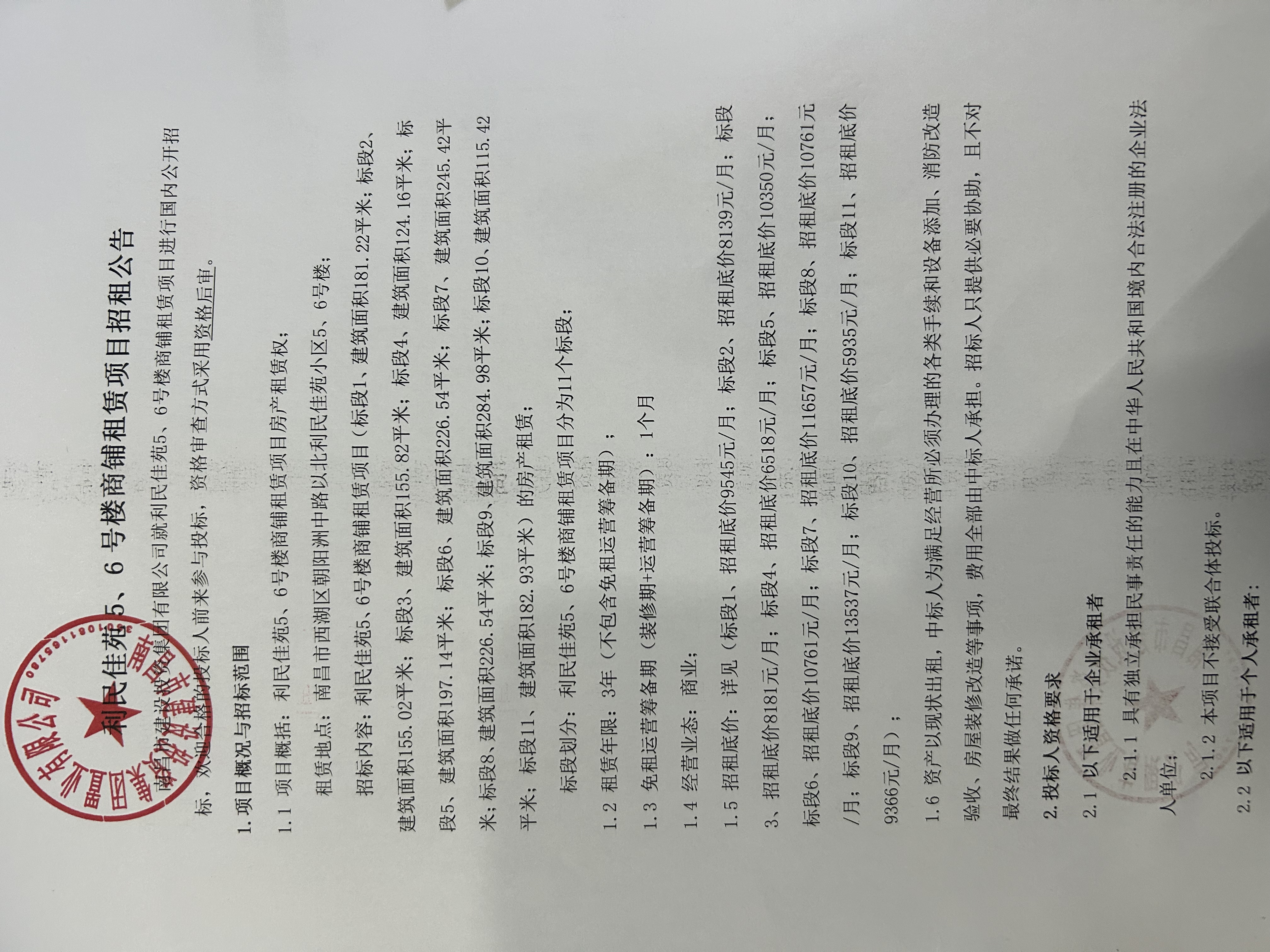 利民佳苑5、6號樓商鋪租賃項目招租公告